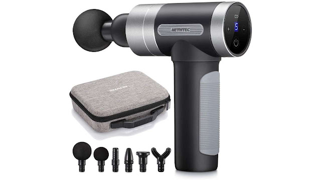 First up, we have the Hethtec Handheld Muscle Massager. This bad boy boasts 6 different massage heads to target all those pesky knots. Plus, with its sleek design and cordless functionality, you can hit every knot in your back without feeling like you're doing some weird yoga pose.